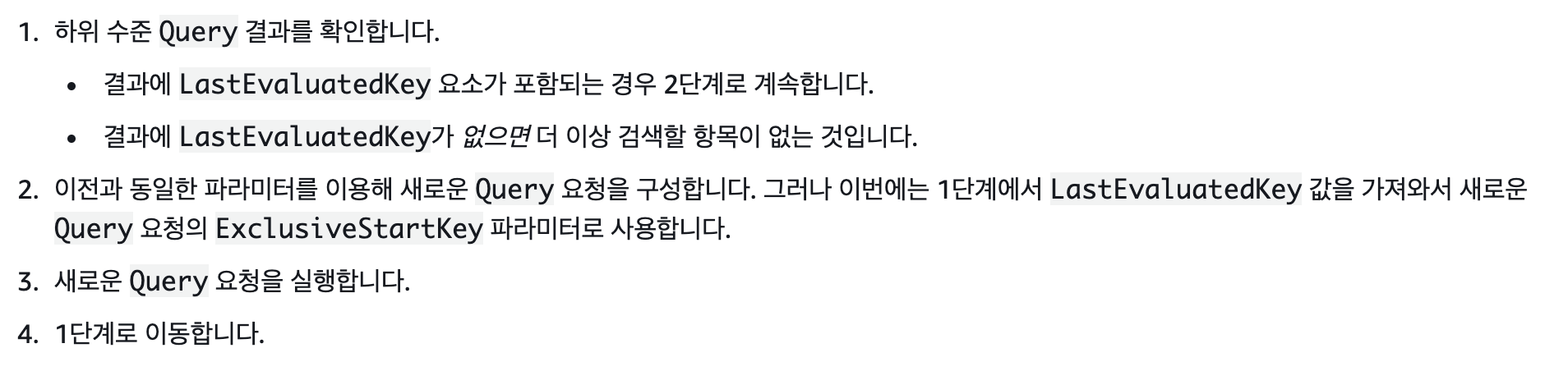 이게 왜 핵심이냐면, DDB의 Pagination은 LastEvaluatedKey를 이용해서 해야하기때문이다