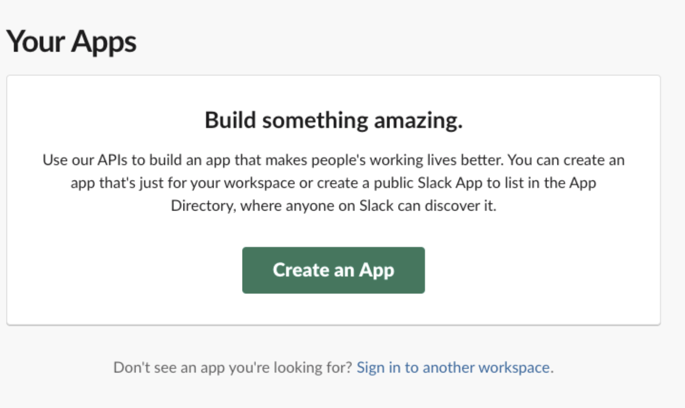 먼저 위 링크로 접속해서 slack 앱을 만들어야합니다