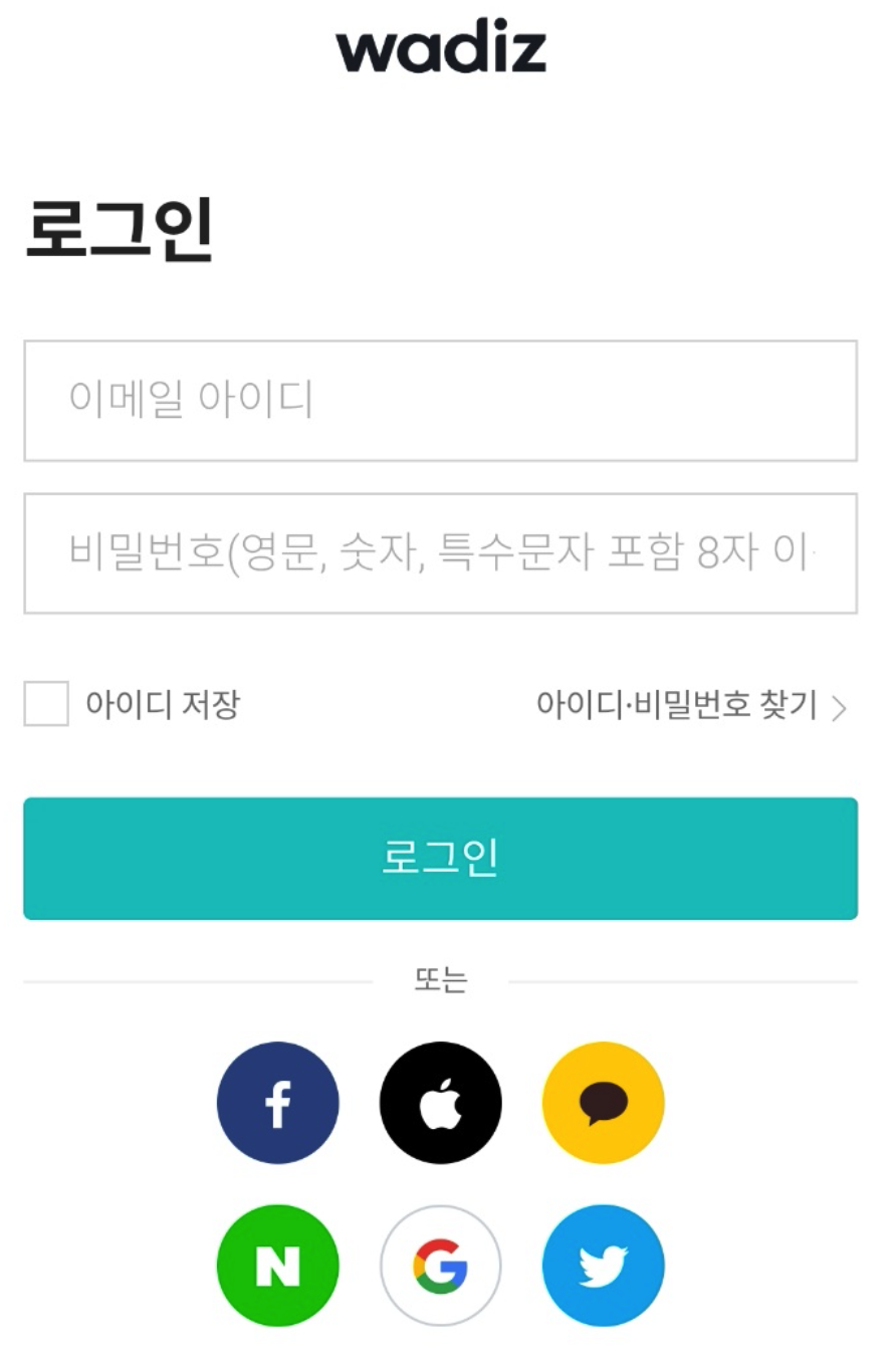마지막으로 와디즈에있는 6개의 로그인 (페북,애플,카톡,네이버,구글,트위터)을