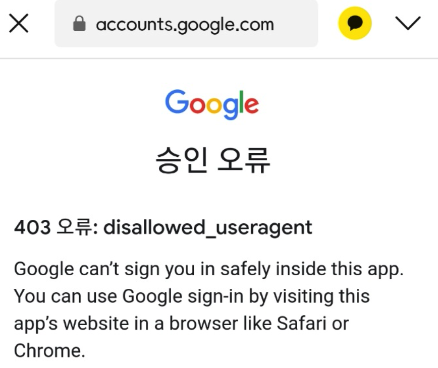 다 확인해봤는데 구글만 403 에러가 발생한다. 어떻게 해결해야될까 .. 어쩔수없는건가 ?