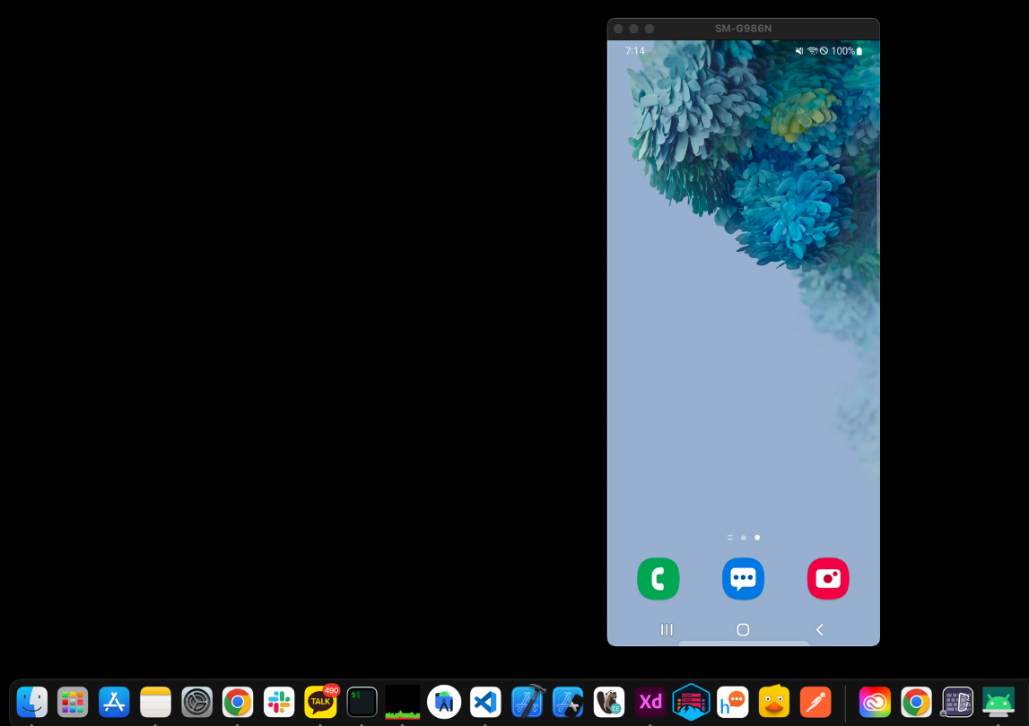 설치후 터미널에 scrcpy 를 입력하면 현재 연결된 스마트폰 화면이 바로 뜨는데 아주 편하다