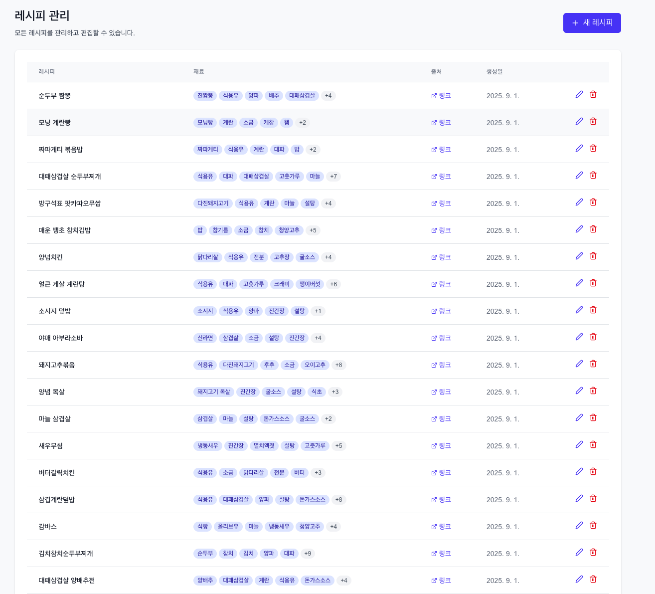 이렇게 간단하게 만든 어드민페이지로 평소 자주보던 유튜버들의 레시피를 하나씩 저장하기 시작했다.