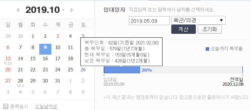 정확한 계산을 위해 네이버 전역일 계산기를 기준으로 할것이다