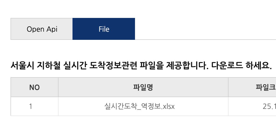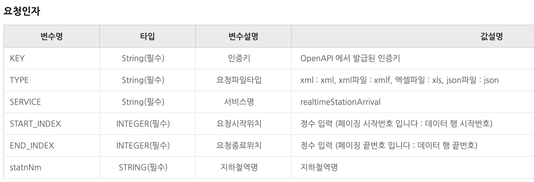 먼저 서울데이터열린광장에서 서울시 지하철 실시간 도착정보의 API를 이용해야한다